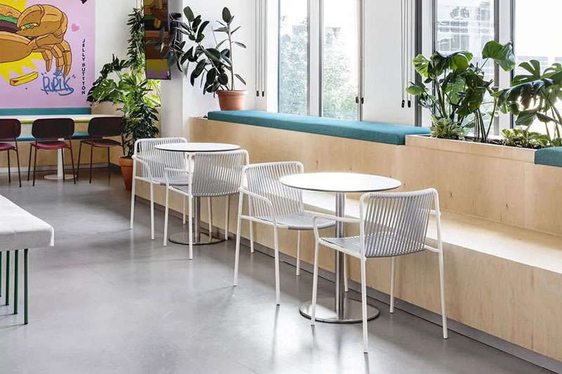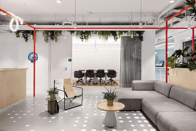 本案的設計出發(fā)點旨在創(chuàng)建一個獨特的空間體驗。在以混凝土、裸露的白色天花樓板、綠色植物、天然木材和白色金屬構筑的中性調(diào)空間背景中,注入跳躍的色彩和卡通圖形設計去展現(xiàn)其設計理念。
