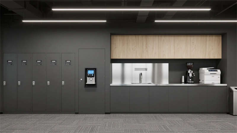 公共支持區(qū)以啞光不銹鋼吧臺為中樞,智能儲物柜與嵌入式咖啡機滿足高效辦公需求。極簡會議室采用深灰烤漆會議桌搭配磁性玻璃書寫墻,環(huán)形反光燈槽確保無影會議環(huán)境。視頻會議室通過U型布局與陣列麥克風優(yōu)化遠程協作,超窄邊框屏幕墻與電動遮光簾實現智能會議場景切換。