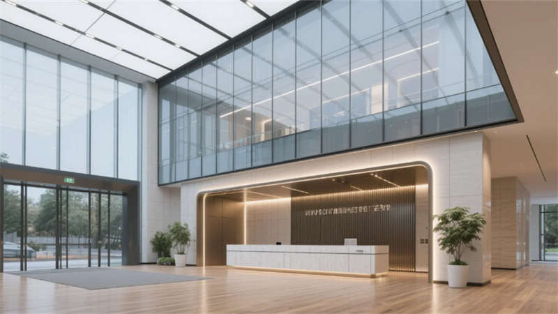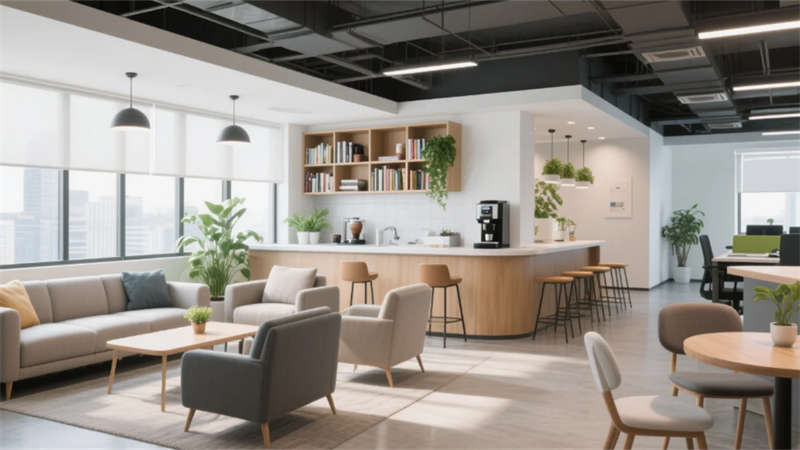 本辦公樓設(shè)計以簡約現(xiàn)代風(fēng)格為核心,打造一個統(tǒng)一而流暢的空間體驗。整體強調(diào)功能性、舒適性和美學(xué)平衡,每個功能區(qū)均采用中性色調(diào)、干凈線條和自然元素,營造出寧靜和諧的環(huán)境。大堂入口以開放通透的布局迎接用戶,結(jié)合玻璃幕墻和木質(zhì)細節(jié),傳遞專業(yè)而溫馨的第一印象。開放式辦公區(qū)通過模塊化家具和充足采光,促進團隊協(xié)作與效率。會議室設(shè)計注重靈活性,透明隔斷和集成設(shè)備支持高效交流。員工休息區(qū)和餐廳咖啡吧作為社交中心,提供舒適休閑空間,增強員工福祉。經(jīng)理辦公室平衡隱私與開放性,簡約家具營造專注氛圍。走廊和衛(wèi)生間延續(xù)統(tǒng)一美學(xué),注重清潔與引導(dǎo)性,確??臻g銜接自然。