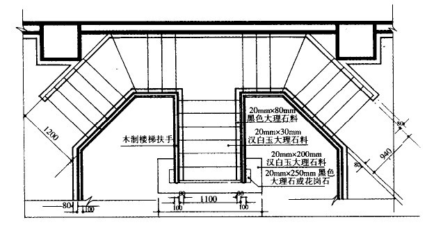 材料的數量,這是一幅樓梯的平面布置圖,結構比較簡單而且使用的裝飾材料比較少,所以圖中同事包含了裝飾