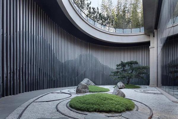 用色退歸自然,僅以石材與木材打造基調(diào),線條錯落有序構(gòu)筑成東方涵韻,為傳統(tǒng)建筑煥新,展現(xiàn)沉穩(wěn)而睿智。