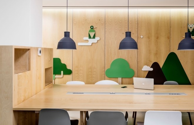 卡通樣式的裝修格調(diào),根據(jù)所在區(qū)域的不同功能而被設(shè)計(jì)的風(fēng)格各異,但卻具有同樣的目的,那就是營(yíng)造出一種通透的感覺(jué),這種在各個(gè)區(qū)域之間自由流動(dòng)的感覺(jué),肯定會(huì)給那些稚嫩的小臉龐帶來(lái)一些快樂(lè)。