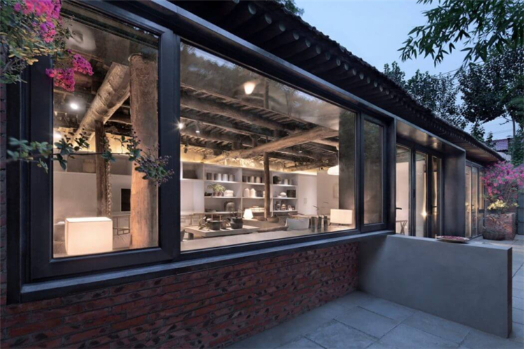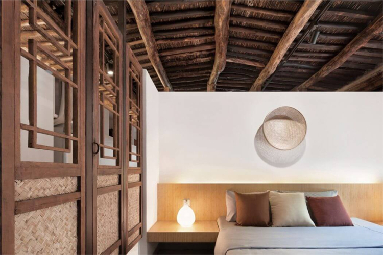 而我們在這次的民宿的功能布局方面,我們根據(jù)與居民的詳細溝通,了解他們的日常生活和習慣,進行調整,重新組織平面圖。在我們拆除吊頂后,更多的空間被釋放,原始的木結構和稻草覆蓋的天花板紋理終于顯露出來,講述了一個時間的故事。在現(xiàn)場勘察過程中,我們在建筑物西側和鄰近墻壁之間發(fā)現(xiàn)了一條約80厘米寬的狹窄通道。因此,我們在走廊盡頭向西側設計了一個觀景窗。在窗外,擺動的竹影有助于將室內空間與自然環(huán)境相連。