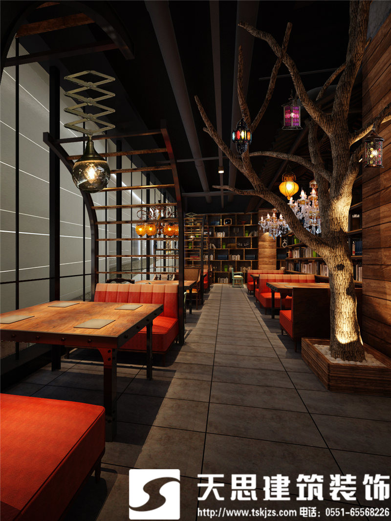 入門處,觸手可及,參差不一的木質(zhì)裝飾成就了獨(dú)特的流動(dòng)感,莞爾一笑就可見擺放一隅的書架。