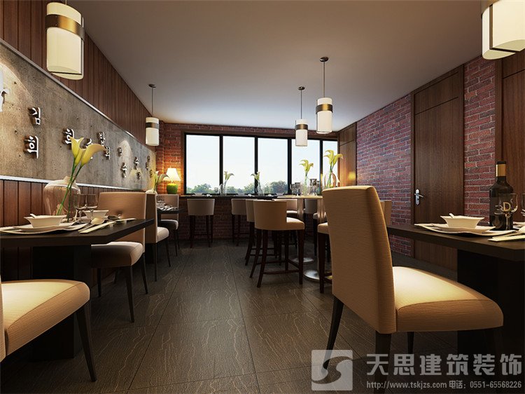 韓國紫菜包飯屬于一家連鎖店,在合肥目前有接近10家分店,在裝修風(fēng)格上結(jié)合了地域文化特點(diǎn),韓國人的居住空間比較狹小,對(duì)空間的利用非常緊湊。席地而坐的生活習(xí)慣讓他們呈現(xiàn)出一種低姿態(tài)的,貼近自然的生活形態(tài),居室的設(shè)計(jì)所呈現(xiàn)出來的是小家碧玉式的精致,沒有奢華和張揚(yáng)??臻g裝飾多采用簡潔、硬朗的直線條 ,反映出現(xiàn)代人追求簡單生活的居住要求,迎合了韓式家居追求內(nèi)斂、質(zhì)樸的設(shè)計(jì)風(fēng)格。