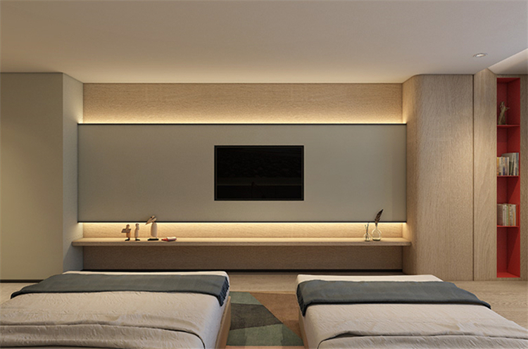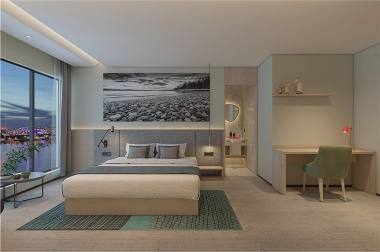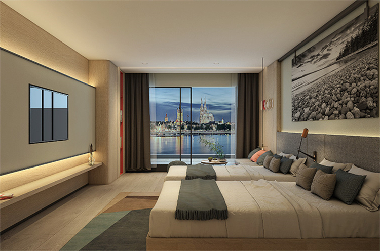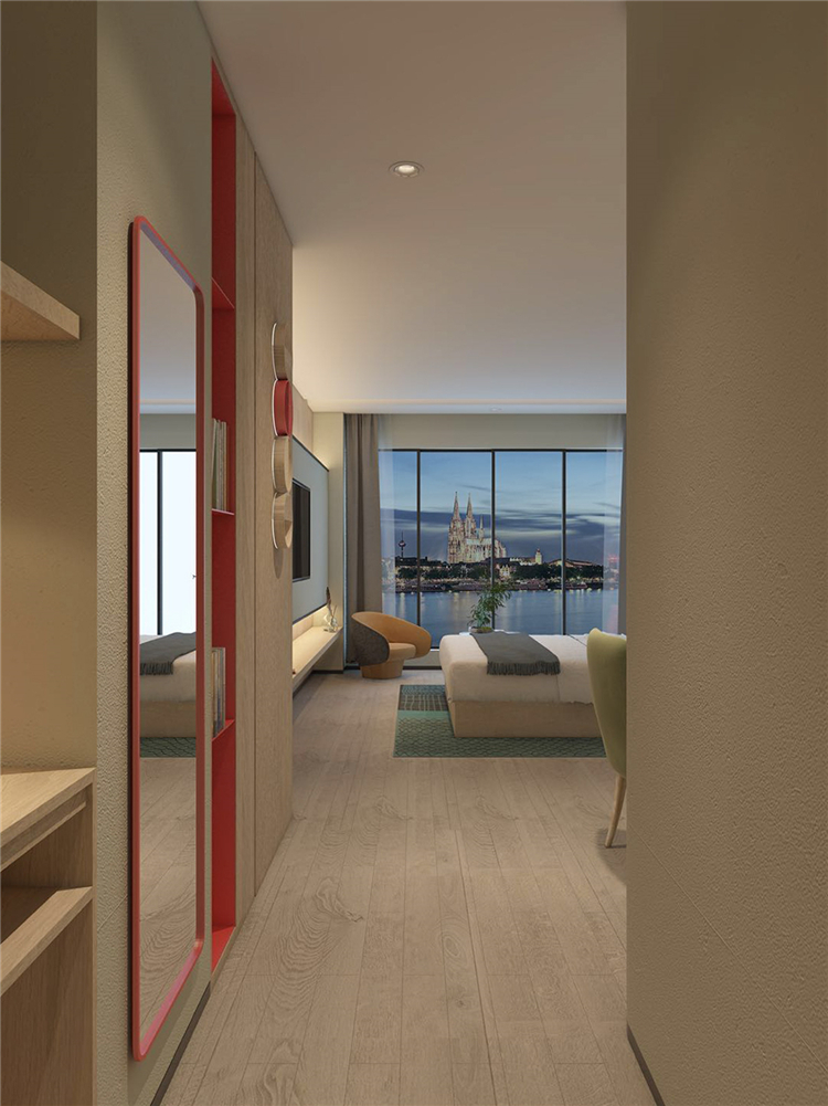 在功能的安排上人性化,為顧客帶來(lái)舒適的入住體驗(yàn)與外立面相呼應(yīng),設(shè)計(jì)師在完整的用材體系上,增加了對(duì)比性明顯的色塊,高度提升了空間的趣味性和耐看度。