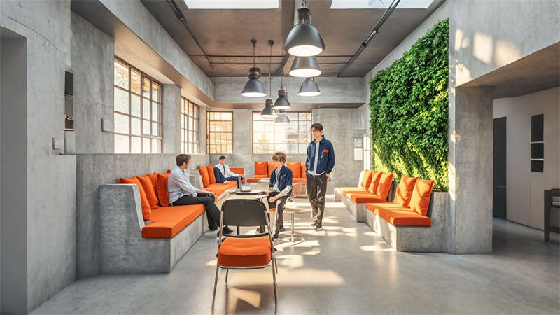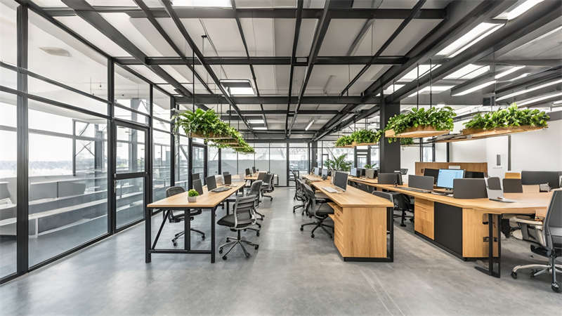 3) 色彩策略運(yùn)用冷色調(diào)提升作業(yè)專注度,暖色點(diǎn)綴緩解視覺疲勞。材料選擇上,金屬格柵、清水混凝土與環(huán)氧地坪的搭配兼顧耐用性與美學(xué)表達(dá),集成式 LED 照明系統(tǒng)實(shí)現(xiàn)能耗降低。該設(shè)計在滿足 ISO 生產(chǎn)標(biāo)準(zhǔn)的同時,通過人性化休息區(qū)與智能管理系統(tǒng),打造現(xiàn)代制造業(yè)空間新標(biāo)桿。