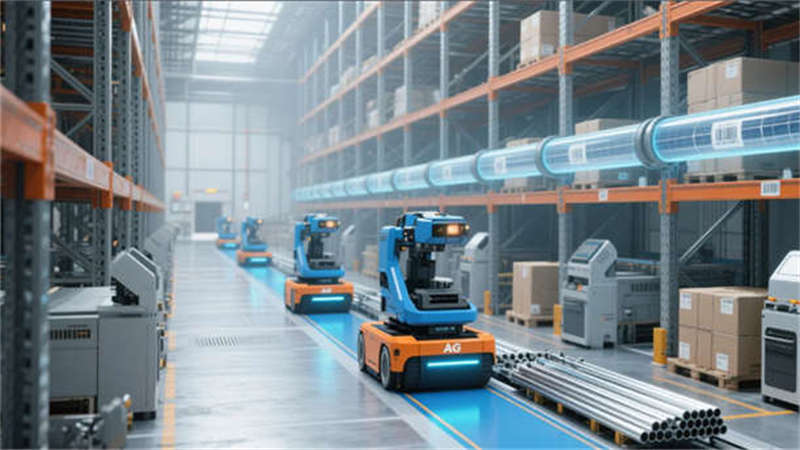 質(zhì)檢實(shí)驗(yàn)室以白色潔凈空間為主軸,三坐標(biāo)測(cè)量機(jī)與光譜分析儀配備環(huán)形補(bǔ)光系統(tǒng),數(shù)據(jù)看板實(shí)時(shí)投射SPC管控圖表,凸顯精密制造的嚴(yán)謹(jǐn)性。倉(cāng)儲(chǔ)區(qū)通過12米高智能立庫(kù)與AGV物流機(jī)器人聯(lián)動(dòng),橙色激光導(dǎo)航帶與電子標(biāo)簽系統(tǒng)實(shí)現(xiàn)“黑燈倉(cāng)儲(chǔ)”效能。