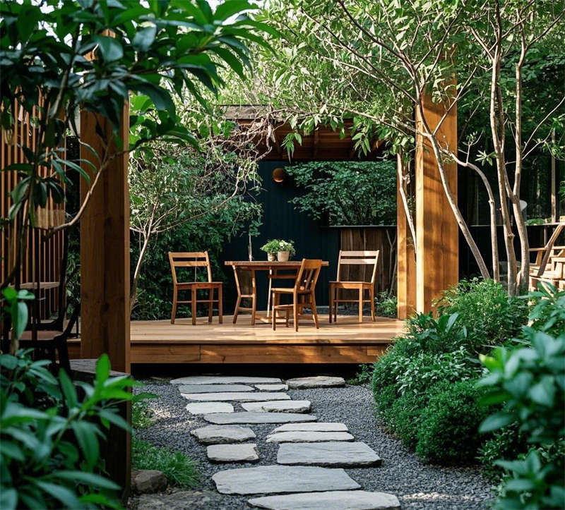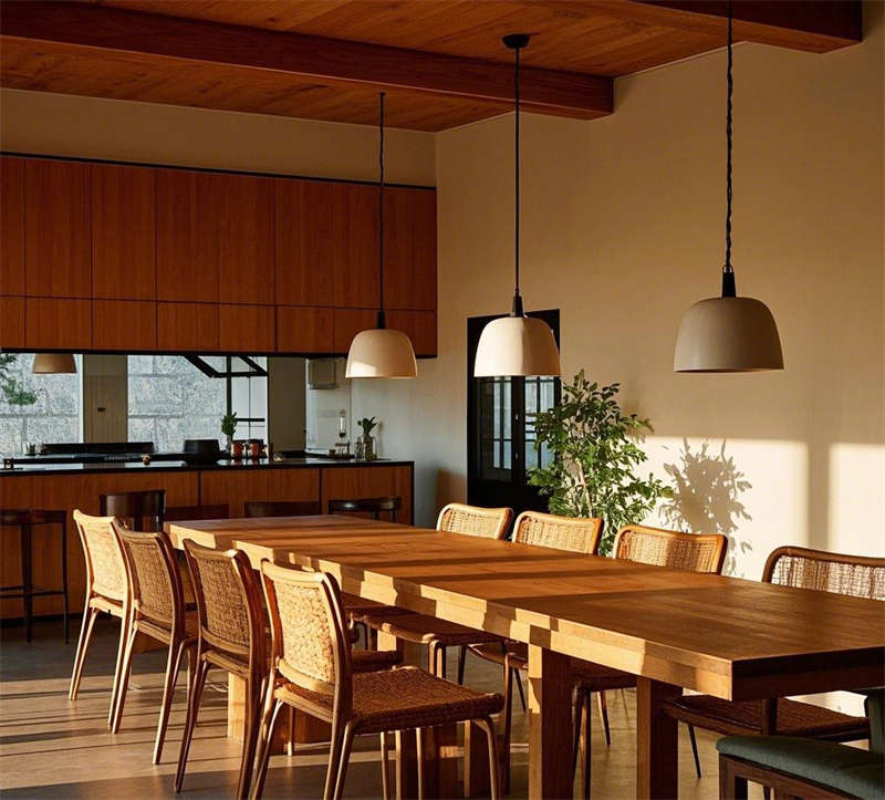 這套1000平民宿設(shè)計(jì)以自然簡(jiǎn)約風(fēng)格為核心,營(yíng)造出溫暖舒適、貼近自然的居住體驗(yàn)。整體空間以原木色調(diào)為主,搭配米白色、淺灰等柔和色彩,輔以綠植點(diǎn)綴,呈現(xiàn)出清新自然的氛圍。大堂以原木色前臺(tái)和藤編吊燈為亮點(diǎn),搭配落地窗引入充足光線(xiàn),營(yíng)造出溫馨的迎賓空間??蛷d采用開(kāi)放式布局,原木地板與編織地毯相得益彰,搭配圓形茶幾和落地?zé)?,打造出輕松愜意的休閑區(qū)域。餐廳延續(xù)自然風(fēng)格,長(zhǎng)桌與藤編餐椅的組合簡(jiǎn)潔大方,開(kāi)放式廚房與吧臺(tái)的設(shè)計(jì)增強(qiáng)了空間的互動(dòng)性。臥室分為兩種風(fēng)格,一種以藤編床頭和棉麻床品為主,營(yíng)造出舒適的睡眠環(huán)境;另一種采用日式榻榻米設(shè)計(jì),搭配推拉門(mén)和竹林景觀(guān),傳遞出寧?kù)o禪意的氛圍。浴室同樣注重自然元素的運(yùn)用,圓形浴缸與綠植的結(jié)合讓人仿佛置身于自然之中,而日式風(fēng)格的浴室則通過(guò)竹制裝飾和庭院景觀(guān),進(jìn)一步強(qiáng)化了寧?kù)o放松的體驗(yàn)。戶(hù)外庭院以石板小路和木質(zhì)平臺(tái)為主,搭配休閑桌椅和綠植環(huán)繞,為客人提供了一個(gè)親近自然的戶(hù)外休閑空間。整體設(shè)計(jì)注重材質(zhì)與光影的運(yùn)用,將自然元素與現(xiàn)代簡(jiǎn)約風(fēng)格完美融合,打造出一個(gè)舒適、放松的民宿空間。