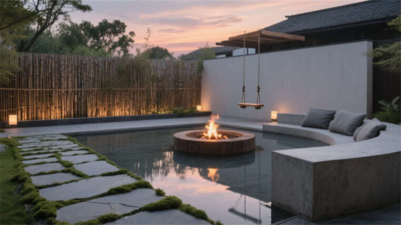 從庭院下沉式火塘的竹影搖曳,到接待臺金屬浮雕的抽象城市地圖,設(shè)計以克制的自然材質(zhì)、低飽和色系與智能化細(xì)節(jié),重構(gòu)現(xiàn)代人對“在地旅居”的想象——讓合肥不止于驛站,更成為一場沉浸式自然人文體驗。
