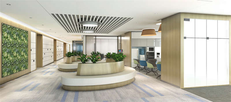 本辦公室裝修項目中,接待大廳,會議中心,以及茶水間和共享辦公處,均安排了數(shù)字化的管理和設計。同時打破原來傳統(tǒng)的深色木飾面、奢華花色大理石設計風格,用了淺木色、白色大理石、科技感的陽極氧化鋁板和轉(zhuǎn)印鋁格柵,整體格調(diào)充滿高級感。一些工位設置共享工位,大大提高了工位的使用率。共享工位,可以設置很多的式樣:卡座、沙發(fā)、創(chuàng)意工位等,這樣共享工位不僅是工位,還可以是休閑討論區(qū)。會議區(qū)的模塊化設計,可移動式隔斷,充分滿足員工工作需求,進行合理分割。
