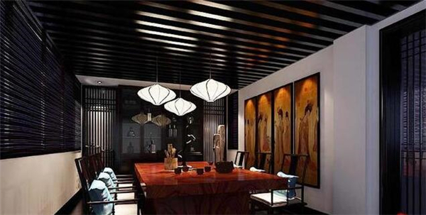 而在裝飾細節(jié)上崇尚自然情趣,花鳥、魚蟲等精雕細琢,富于變化,體現(xiàn)了中國傳統(tǒng)美學(xué)精神,又給人的內(nèi)心深深的感動,用傳統(tǒng)家具(多為明清家具為主)、裝飾品及黑、紅為主的裝飾色彩。