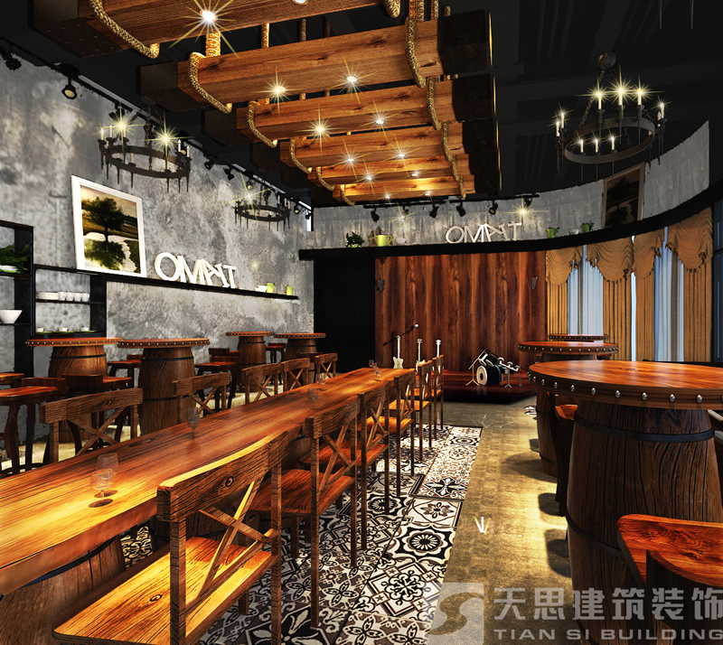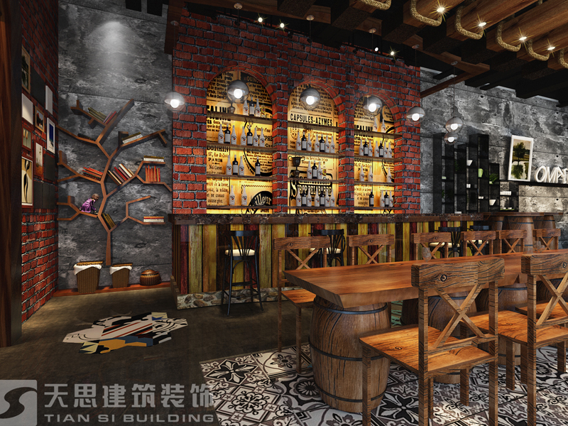 設(shè)計簡介:名字為:漫步酒吧,設(shè)計風格定義為文藝復(fù)古風,主要是以紅磚、復(fù)古水泥墻和木質(zhì)材料為主。讓人有種休閑溫馨的感覺,這個項目投資李總曾跟設(shè)計師提過:只是完成兒時的夢想,讓一起愛玩音樂的伙伴的聚在一起玩玩。當時就被這種心態(tài)給打動了,生活就是一直積極向上的態(tài)度。把這種理念融入我們設(shè)計中,那么設(shè)計出來的東西就有了靈魂。