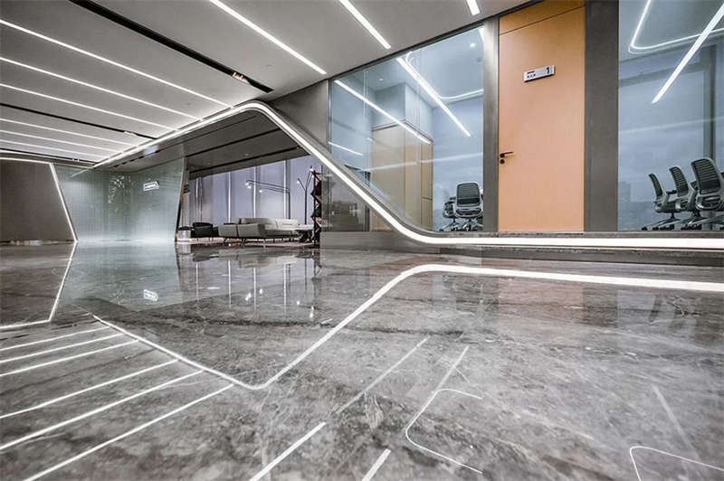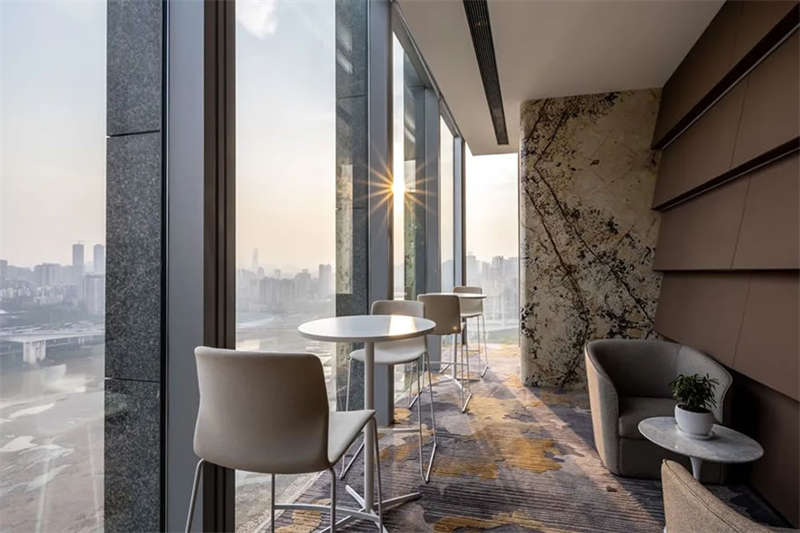 此辦公場所融合行業(yè)范式、藝術(shù)、辦公、會客和休閑功能,豐富的城市景觀與奢華的家具用材將空間美學(xué)統(tǒng)一起來,落地窗獲得更多明亮場域,空間通透舒朗,客戶進入空間能感受到簡潔明亮的氛圍。