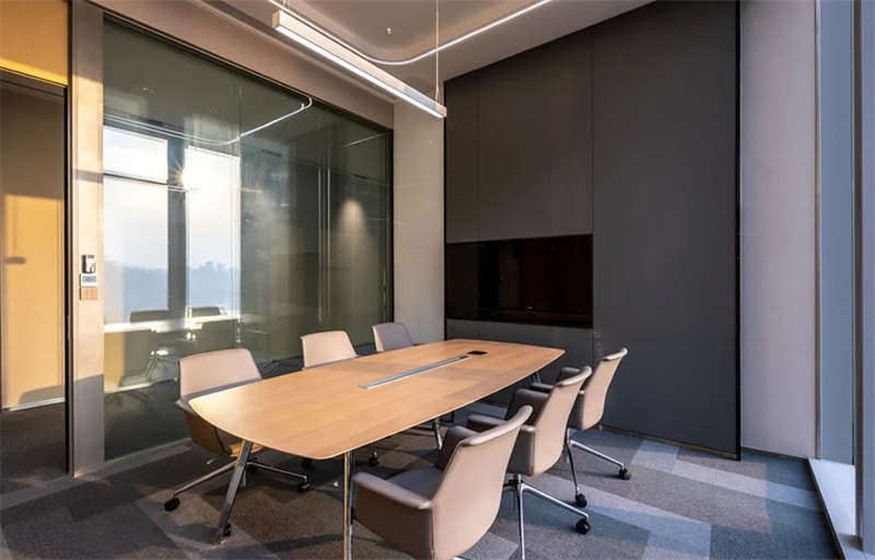 根據(jù)委托方的風(fēng)格與需求,充分確??臻g利用率,圍繞大氣疏闊的會客區(qū)域,以疊合排列的大小空間加深空間的縱深感與豐富性,在巨大體量與人的尺度之間尋求平衡,以極簡的空間場域方式呈現(xiàn)精英律所氛圍,營造標準的辦公場所。