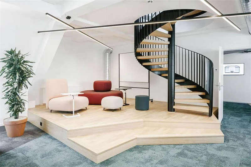 在與客戶的密切合作以及對(duì)方員工的積極參與下,設(shè)計(jì)師成功創(chuàng)建了一處精彩的工作空間,在這里,人們可以集中精力專注工作,也可以隨時(shí)隨地進(jìn)行各種不同的協(xié)作、交流、互動(dòng)和頭腦風(fēng)暴。各種不同主題的廳廊空間、靈活多元的協(xié)作空間、以及巨大的屋頂露臺(tái),讓這處空間變得獨(dú)一無(wú)二。空間隨著人們的移動(dòng)不斷變化著景觀視線和功能場(chǎng)景,豐富而精彩的設(shè)計(jì)讓這里步移景異,充滿驚喜和樂趣。