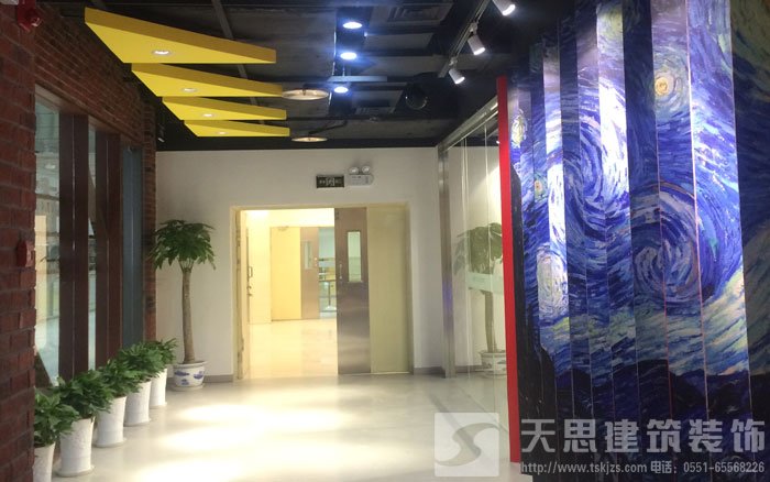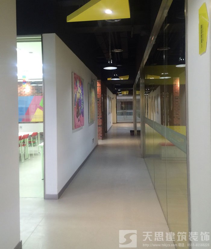 以下圖片,節(jié)選自待完工的工地現(xiàn)場,分別是入口、大廳、過道、教室、活動中心等功能區(qū)域。整體選擇LOFT混搭風(fēng)格,裸露的天花板+墻面,搭配現(xiàn)代元素,既節(jié)省了裝修成本,也營造了“藝術(shù)人生”的環(huán)境。