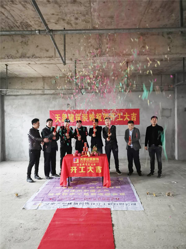 開工現(xiàn)場,客戶與天思裝飾工程部負(fù)責(zé)人,項(xiàng)目經(jīng)理都來到了現(xiàn)場