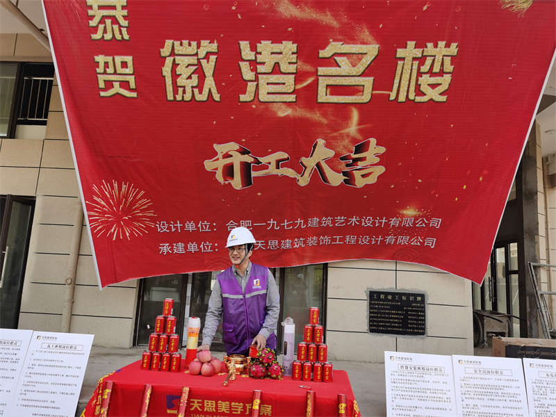 安徽天思建筑裝飾全體員工,恭賀徽港名樓裝修開工大吉,感謝徽港名樓對(duì)公司的認(rèn)可,順祝商祺!