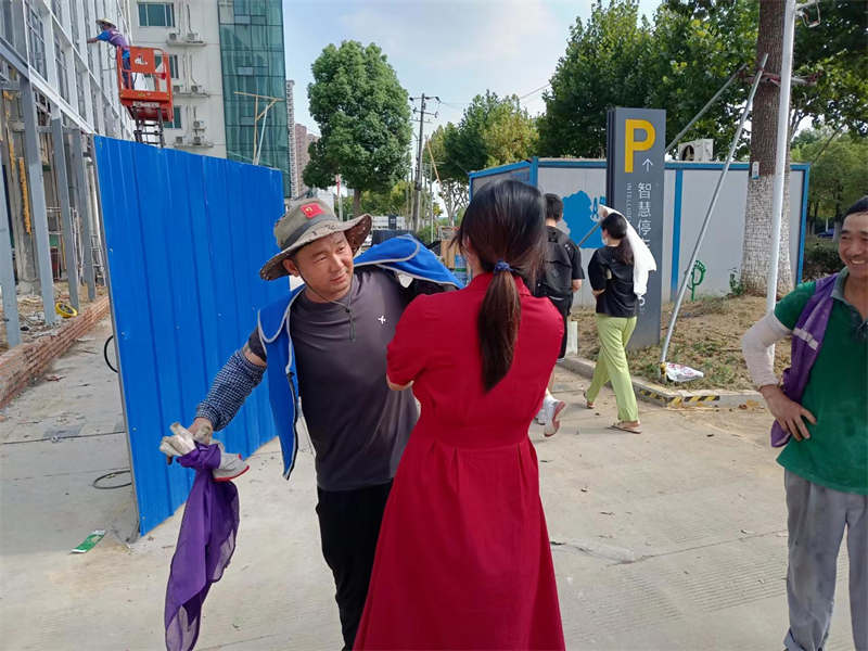 一到項目工地,就看見了一線工作者在40度酷暑的天氣下勞作,每一滴汗水都是辛苦工作的象征。胡主管將公司領(lǐng)導買的礦泉水,冰袋和安全作業(yè)馬甲都搬了下來,招呼一線工作者過來喝水休息一會。在慰問施工勞務(wù)作業(yè)人員時,她強調(diào),要多方舉措防暑降溫,保證高溫作業(yè)條件下員工的身體健康;要科學安排作息時間,避免疲勞施工,保證安全。
