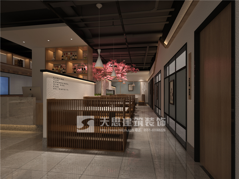 圓柱吊燈、墻壁刻字、墻壁上的國畫、餐具的擺放,一切的一切相互融合起來,形成一個優(yōu)質的就餐環(huán)境,在這里讓客戶感受到不一樣的就餐氛圍。