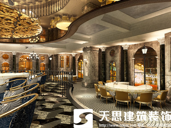 西餐廳室內(nèi)空間裝修一般傾向于商業(yè)性質(zhì)的,把主題形象化是關(guān)鍵。可是,太直截了當(dāng)?shù)亟淮鲋黝},露多藏少,則缺乏情趣,反而難以打動(dòng)顧客,這也就是西餐廳裝修的藝術(shù)問(wèn)題。主題的表現(xiàn)宜采用暗示、隱喻等含蓄的表現(xiàn)手法。