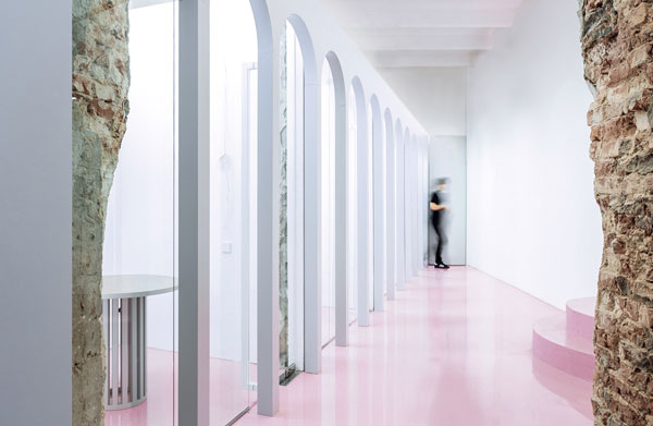 下面這個粉嫩嫩的辦公空間是NGRS獵頭公司位于莫斯科市中心的總部,鄰近紅場和克里姆林宮。該辦公室室內(nèi)設計采用了單一的白色色調(diào),并在地板上大面積的使用了柔和溫馨的粉色。該公司的職員90%是女性,這個萌發(fā)少女心的色彩方案以及半圓形臺階及拱門的設計得到了職員的一致好評。