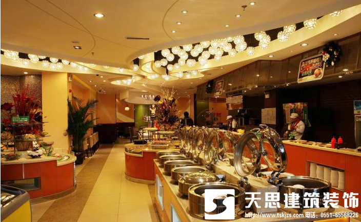自助餐廳的形式是多元化的,中式與西式之間、主題與主題之間的不同對餐臺的布置要求也是各異的,可塑性非常高。合肥天思裝飾公司有著十幾年專業(yè)的餐飲飯店設(shè)計裝修經(jīng)驗,可以為您提供免費專業(yè)的前期咨詢服務(wù),電話:0551-65568226。