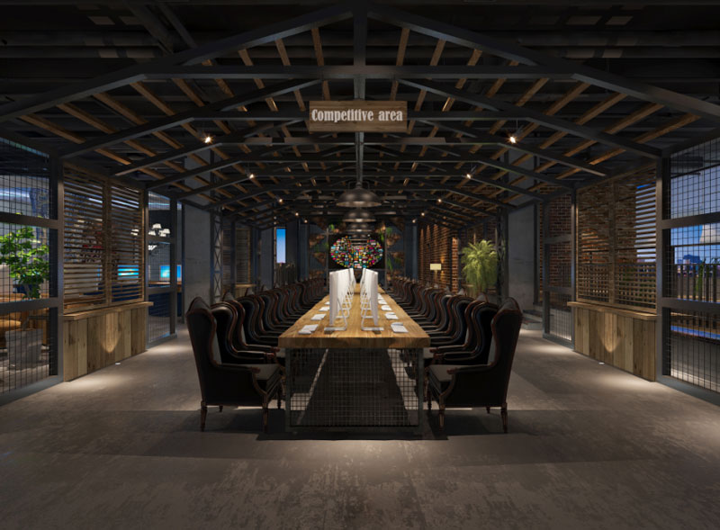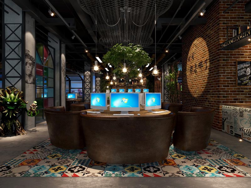 合肥網(wǎng)咖裝修:美式風(fēng)格咖啡廳網(wǎng)吧室內(nèi)空間設(shè)計(jì)方案(含效果圖+實(shí)景圖)