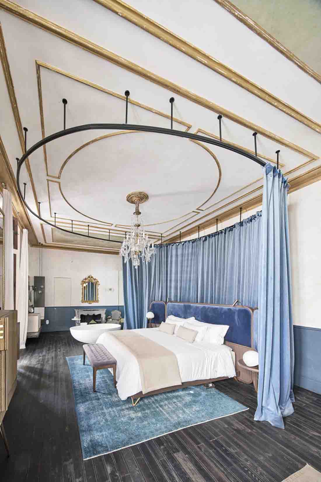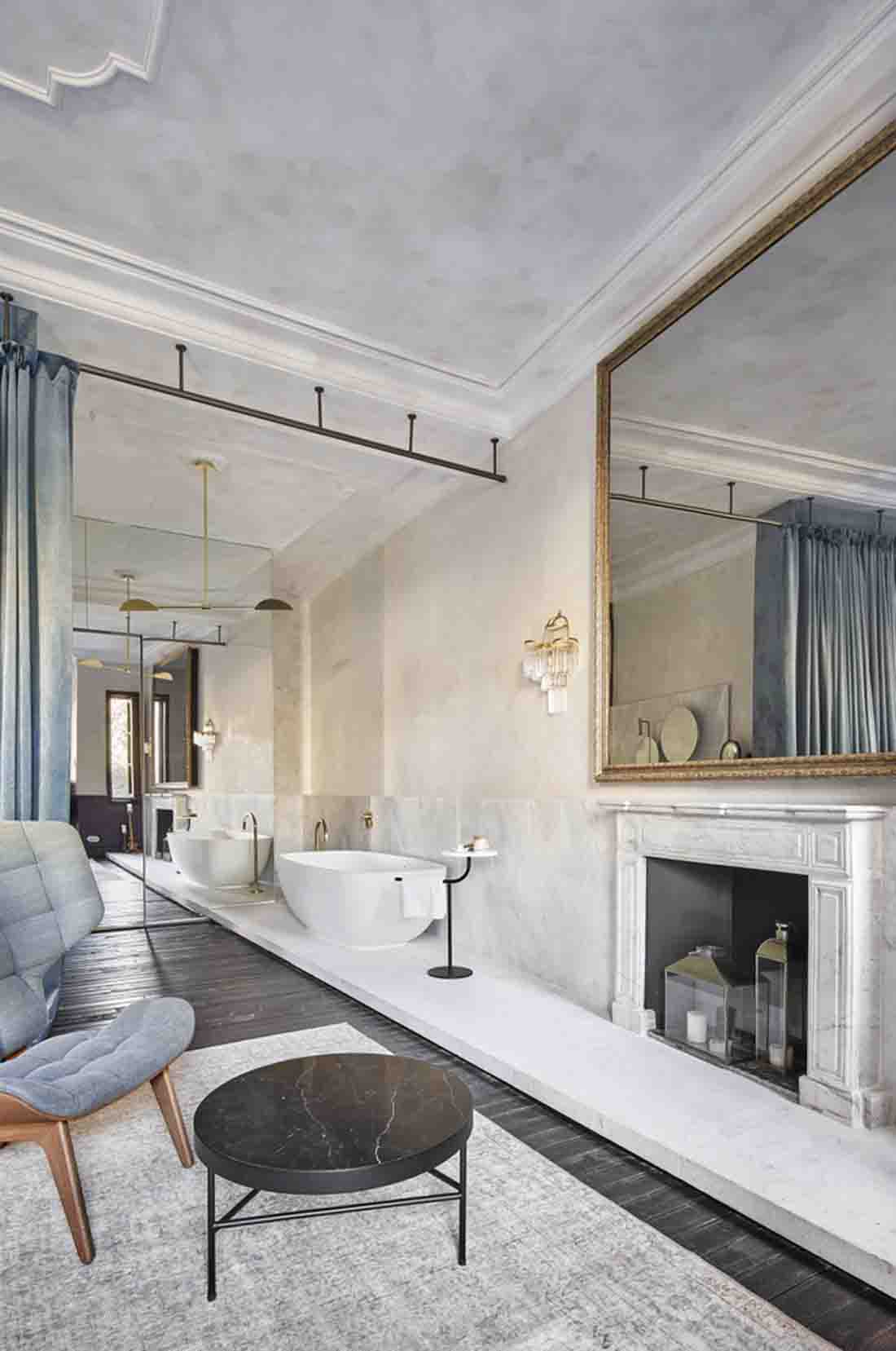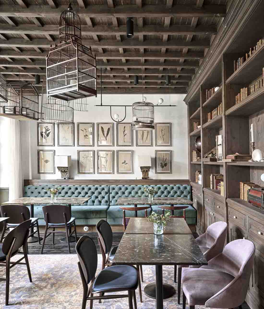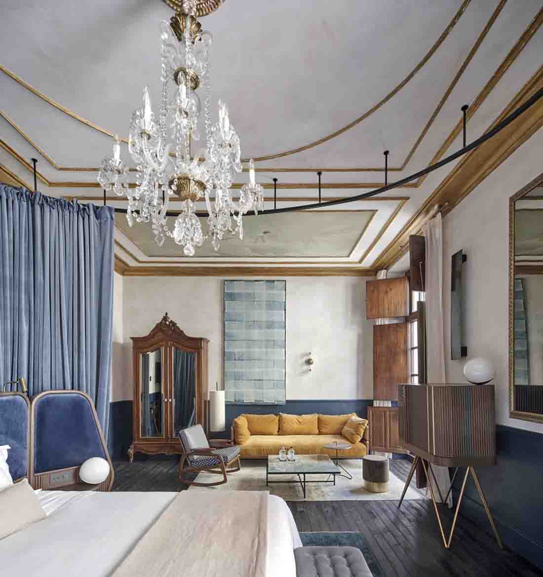 設(shè)計師旨在喚起比酒店更多的參觀房屋的經(jīng)歷。因此,客戶不是在酒店接待處而是在房子的門廳見面;找到的餐廳而不是餐廳,而是找到了居民用餐室,這些房間和客廳就像您在老房子中找到的那樣。該項目精心保留了建筑物中浪漫的氛圍,并與不同時期的干預(yù)和元素進(jìn)行了有意識的對比。這是對現(xiàn)有百年建筑雜交的尊重,它保留了過去的痕跡,并避免了房屋從未擁有過的輝煌過去的錯誤恢復(fù)。