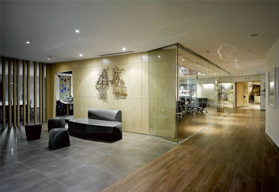 整個公司氛圍追求一種藝術(shù)博物館的氣質(zhì),接待區(qū)黑白調(diào),時尚、簡潔、內(nèi)斂且大氣,流線圓暢亞克力前臺是點睛之筆,令空間熠熠生輝。整個辦公空間設(shè)計,充分利用了自然采光與自然通風(fēng),淺色的木飾面,灰色的地磚,透明的玻璃隔斷。寬敞的廊道,營造了明亮、通透、開放、輕松的工作氛圍。處處點綴的藝術(shù)品更激發(fā)了員工追求時裝藝術(shù)化的熱情。