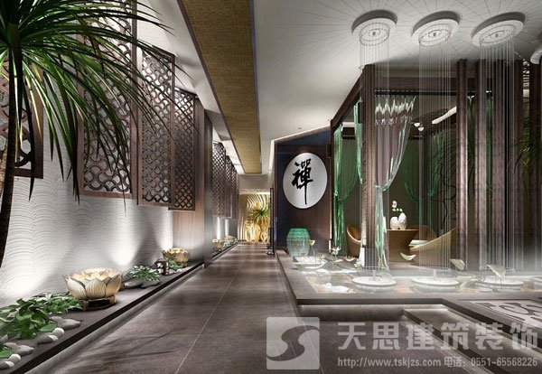 養(yǎng)生SPA會所設計,其環(huán)境氛圍和情景創(chuàng)設,設計師在前期設計時,注重風格選擇與養(yǎng)生理念的綜合貫通,創(chuàng)造出更有禪意和境界的休閑空間,有效緩解人的精神壓力,肢體和情緒得到放松和釋放。