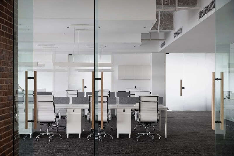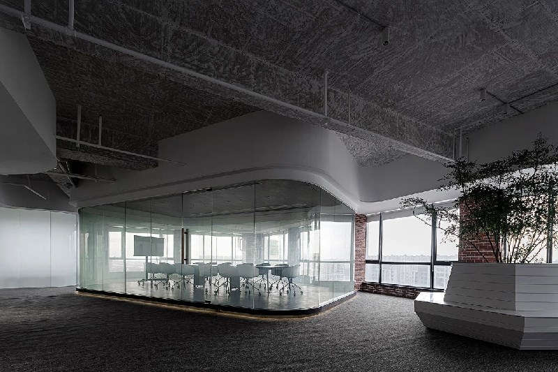 不同于以往辦公一味追求的對稱藝術(shù),經(jīng)由橫平豎直的線條勾勒,本案布局在硬朗的輪廓下規(guī)整有序,又與弧形彎道相輔相成,運用圓角規(guī)避各處尖銳轉(zhuǎn)折,柔和視覺。