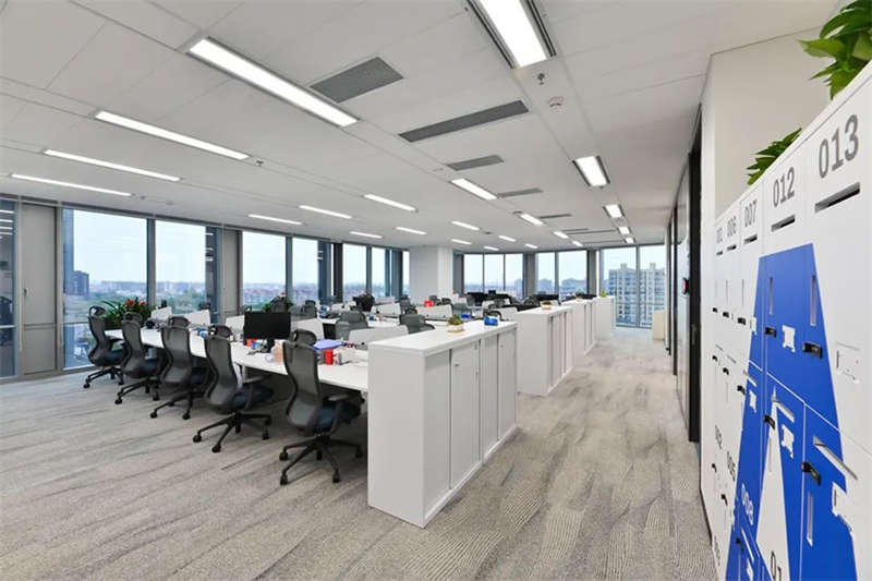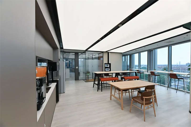 員工區(qū)部份選用了電動(dòng)可調(diào)的升降辦公桌,以滿(mǎn)足員工個(gè)性化的需求,白灰色的家具搭配,混搭淺木色的休閑洽談區(qū)域,地面選用流線款長(zhǎng)版的無(wú)膠水鋪裝的地毯相呼應(yīng)。提升了空間品質(zhì)和美感。