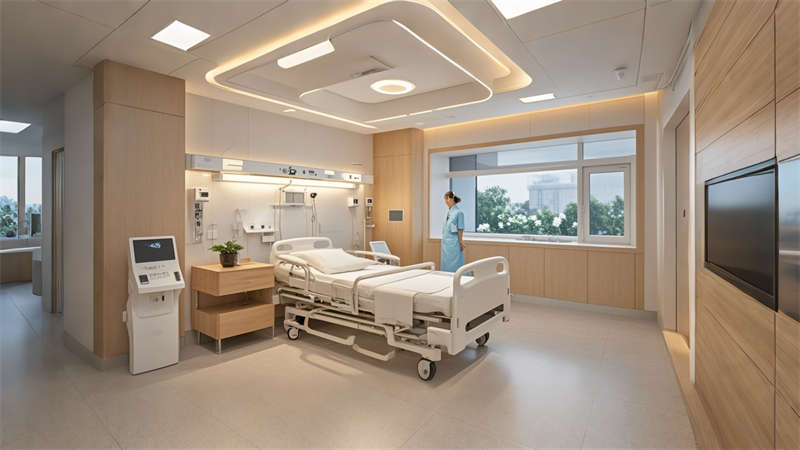本8000㎡現(xiàn)代醫(yī)院設(shè)計以 ' 療愈型智能醫(yī)療 ' 為核心理念,采用模塊化空間布局。門診區(qū)運用淺藍(lán)灰主調(diào)配木紋元素,通過色彩心理學(xué)緩解患者焦慮;醫(yī)技區(qū)采用高反射率材料增強(qiáng)空間通透感。創(chuàng)新性整合智能導(dǎo)診、空氣質(zhì)量管理及醫(yī)療物流系統(tǒng),病房單元設(shè)置多模式照明系統(tǒng),兼顧醫(yī)療操作與患者休憩需求。環(huán)??咕牧先采w,關(guān)鍵區(qū)域配置跌倒預(yù)警地膠系統(tǒng)。屋頂療愈花園突破傳統(tǒng)醫(yī)療空間限制,形成立體綠化體系。整體設(shè)計實現(xiàn)醫(yī)療功能、人文關(guān)懷與智能科技的有機(jī)融合,打造新一代智慧醫(yī)院樣板。